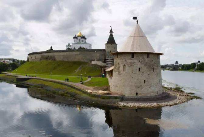Первое, что стоит посетить — это местный кремль. Это могло быть идеальное место для съемок Игры престолов, особенно сцен Винтерфелла. Самая старая часть города, Кремль, расположена высоко на живописной косе двух рек: Псковы и Великой.