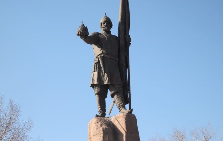 Мало что известно о молодости Ермака (родился между 1532 и 1542 — 1584). Иван Грозный повелел Ермаку покорить Сибирь. Атаман принял помощь от купцов Строгановых, для организации экспедиции и отправился со своей дружиной в путь. В путешествии он победил войска Кучум-хана, последнего хана Сибири и потомка Чингисхана, в Кашлыке, средневековой крепости, расположенной в 17 км от современного Тобольска. Силы Ермака на исходе, и возникла нехватка снабжения, но он оказал поддержку остякскому народу, и они помогли ему. Во время короткого путешествия Ермак завоевал огромные территории Сибири, но сам погиб в одной из схватке с татарами.